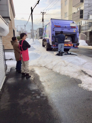 処分品の中から三輪車が出てきたので、その思い出をお聞きしながら 車の中に消えてなくなるまで見守っていました。